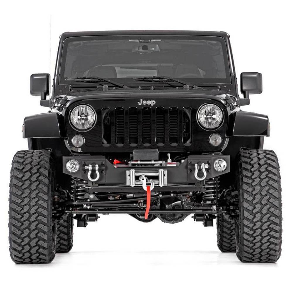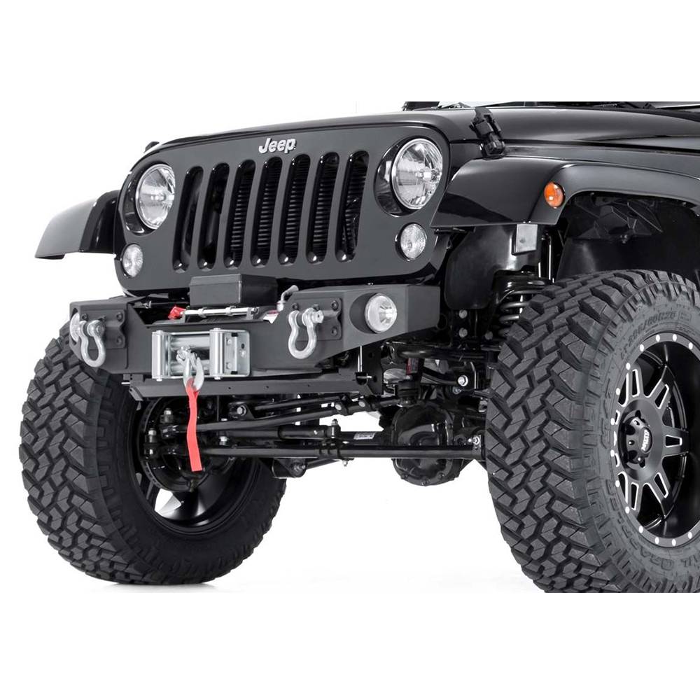 Rough Country 1062 Hybrid Stubby Winch Front Bumper with Fog Light Mounts for Jeep Wrangler JK 2007-2018