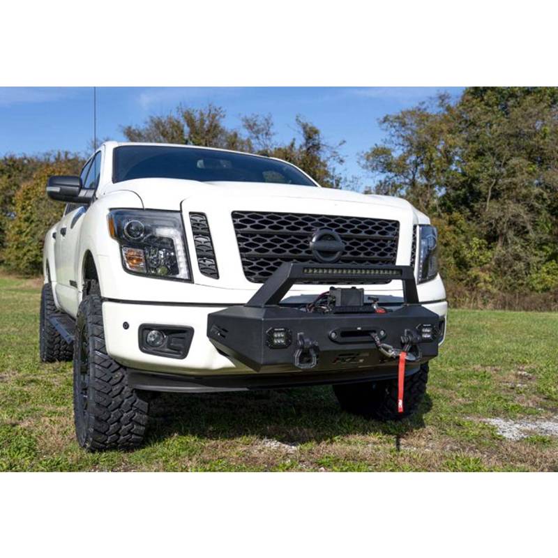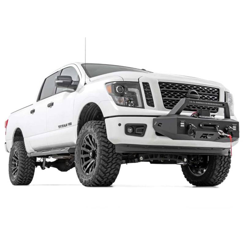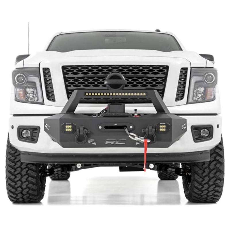 Add a professional recovery and lighting solution to your vehicle with Rough Country EXO winch mount system for Nissan titan trucks. This innovative recovery solution bolts-on right over the factory bumper, giving your truck a wealth of new abilities and aggressive good looks. Rough Country EXO winch mount system features a 20" black series single-row LED Light bar and two flush mount black-series LED cubes for incredible off-road illumination. A rugged 1/4" thick steel winch mount can fit any standard-sized winch while a set of reinforced d-rings offer the perfect recovery point to get you out of any jam. Best of all, this kit is easy to install, with a 100% bolt-on installation process thats simple enough to do in any home garage and can be fully returned to stock at any time. Upgrade your truck with Rough Country EXO winch mount system and gain incredible recovery and lighting power in an instant.