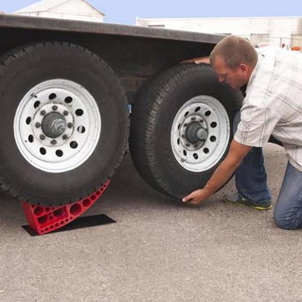 The rapid jack is the best friend when it comes to fixing a flat tire or removing a wheel on your multi-axle trailer. Simply place the small end of the rapid jack under the closest good tire and drive up. It can also be used as a jack wheel holder, a jack post block, and a pad block. Doubles as a wheel chock.