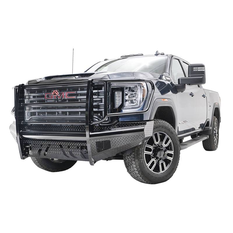 This Fab Fours GM20-55060-1 Black Steel Bumper With Full Grille Guard For the GMC Sierra 2500is another great choice that includes the grille guard along with a full-fledged custom bumper fitting one of the best trucks in the business. You can choose to add other accessories such as a winch plate, VooDoo Recovery Rope, or step up to make engine maintenance easier.